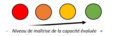 L'évaluation enseignante du travail se fonde uniquement sur un symbole de couleur indiquant le niveau de maîtrise sans aucune autre annotation.