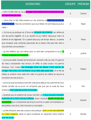 Les productions d'élèves sont rendues accompagnées du code couleur avec une seule indication orale donnée par l'enseignant : « La même évaluation aura lieu la semaine prochaine ». Un temps libre de remédiation de 10 min est alors proposé pour permettre aux élèves de travailler ensemble ou seul pour chercher leurs erreurs et s'améliorer. Il est à noter, que l'enseignant n'a pas pour habitude de travailler avec un livre scolaire en classe, il n'est donc pas disponible durant cette phase. Il semble nécessaire de limiter son utilisation lors de cette étape pour catalyser les échanges entre pairs.