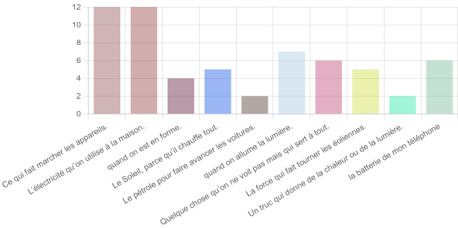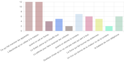 l'énergie comme une réponse au besoin de faire fonctionner des objets technologiques : « Ce qui fait marcher les appareils. » « la batterie de mon téléphone »