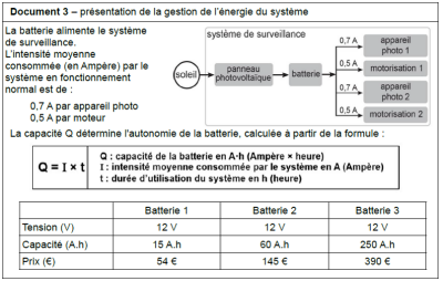 Exemple : Faire un choix de batterie pour un système (inspiré du sujet métropole de la session 2024 du DNB)